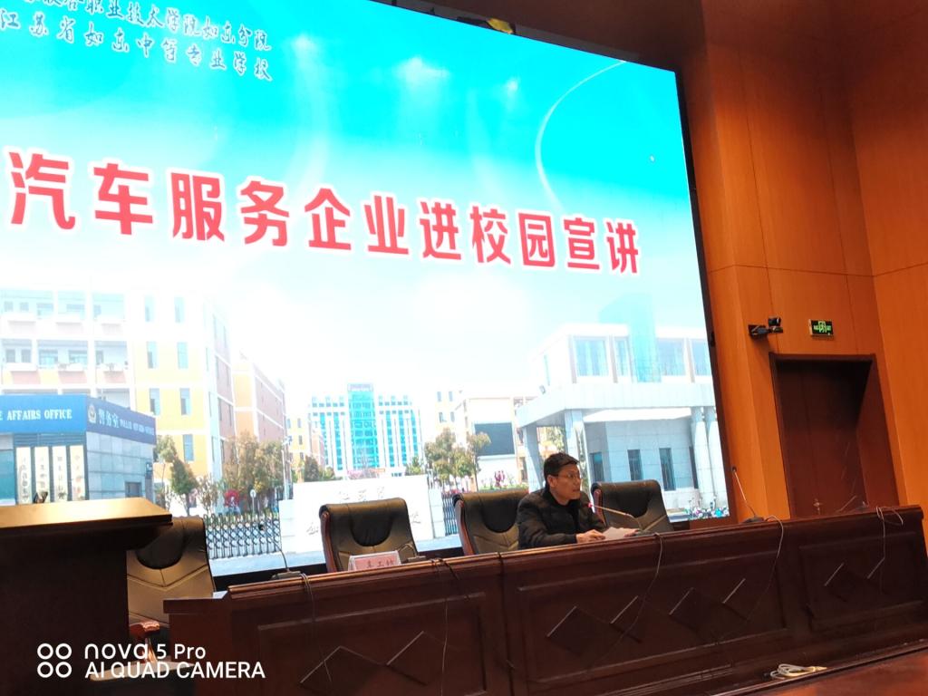 12月7日下午,汽车工程系举行了本地优秀汽修企业进校园宣讲活动,邀请如东金琥哈弗汽车销售服务有限公司、如东车友汽车美容装潢中心、如东美保威汽修厂、如东宇天汽车服务有限公司、南通盛创汽车销售服务有限公司(上汽通用车工坊)等五家企业到校宣讲。