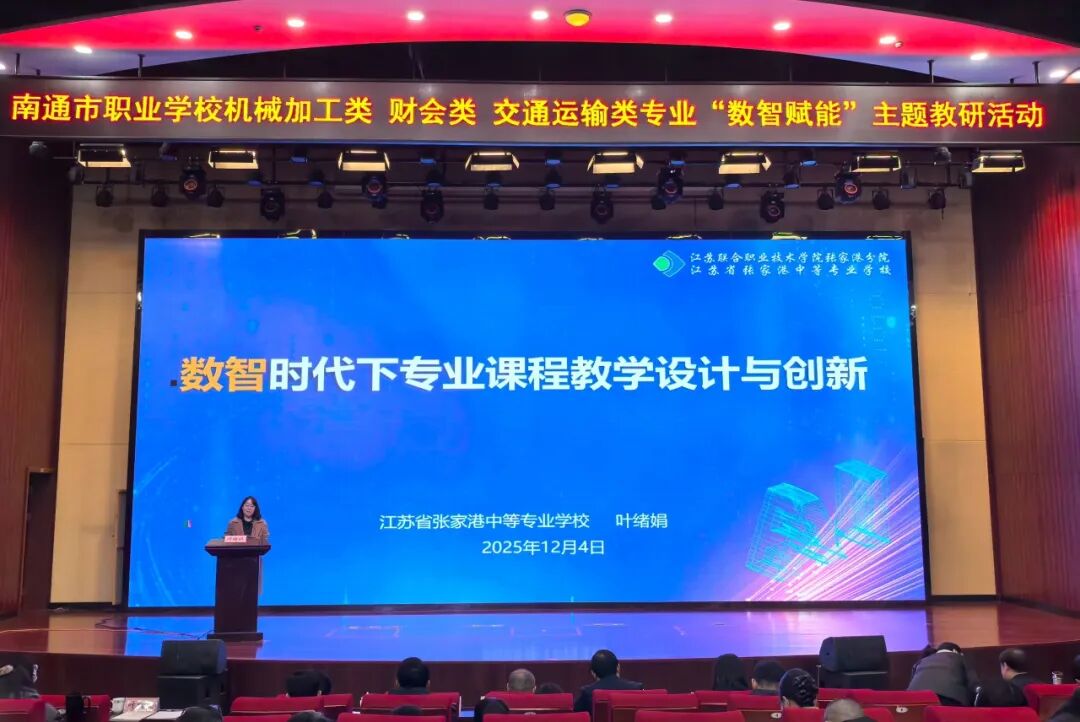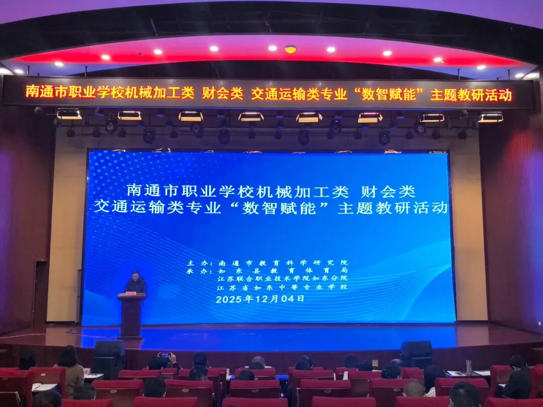 冬月暖阳聚匠心,数智赋能启新程。12月4日至5日,由南通市教育科学研究院主办,如东县教体局、如东中专承办的全市职业学校机械加工、财会、交通运输三大类专业“数智赋能”主题教研活动顺利举行。来自全市机械加工、财会、交通运输教科研中心组成员、各校骨干教师及张家港中专、浦口中专等80余位职教同仁,共赴这场智慧与实践交织的教研盛会。